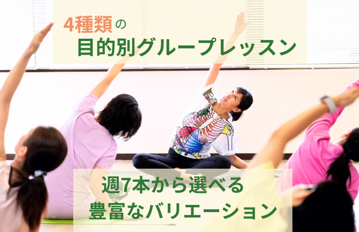 初めての方やゆったり動きたい方におすすめ「ほぐしピラティス」、クラスに慣れてきた方、体力に自信がある方におすすめ「中級ピラティス」「脂肪燃焼ピラティス」、お一人ずつ体のクセや動きを確認したい方へおすすめ「パーソナルレッスン(マット・マシン)」、ご家族、お友達、同僚とセミパーソナル・グループレッスンも開催。さまざまなピラティスクラスの中から自分に合ったクラスを選ぶことができます。日曜朝の「朝ピラティス」、公園で「青空ピラティス」(2026年4月より再開予定)も開催中!